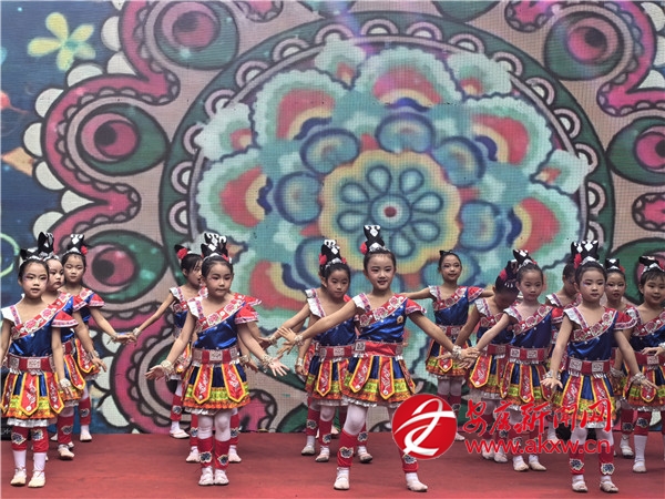 鼓楼小学的学生们表演的舞蹈《苗娃踏歌迎国庆》,以朝气蓬勃的舞姿和天真烂漫的笑脸,踩着欢快的节拍,表达了少年儿童对祖国生日最可爱的祝福,展现了新时代安康少年积极向上的精神风貌。