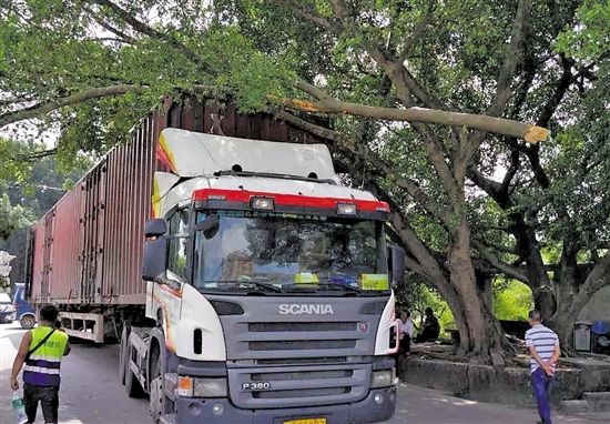 9月13日上午11时左右,在广州花都区花东镇竹湖村,一辆外地来的货柜车刮断了村口一棵数十年树龄的榕树的一条树枝(见上图),村民将货车扣留下来,要求货柜车司机盛先生赔偿18.8万元。19日,羊城晚报记者了解到,最终盛先生在当地派出所的协调下,与竹湖村村民代表协商达成一致,赔付2.8万元,15日晚盛先生已经取走货柜车。