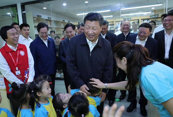 2018年10月24日中午,正在深圳市考察的习近平来到龙华区民治街道北站社区,走进社区党群服务中心。“办事方便吗?”“对社区环境满意吗?”“退休生活怎么样?”他问得十分仔细。在社区儿童之家,当孩子们看到习爷爷来了,一个个兴奋地跑上前来,热情拥抱习爷爷。总书记亲切地摸摸他们的小脑袋,同他们打招呼。