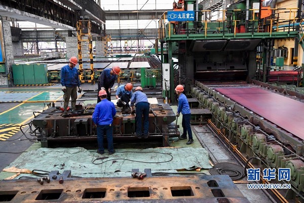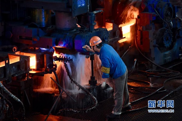 11月17日,工作人员在福建省三明市三钢集团中板厂内作业。新华社记者 姜克红 摄