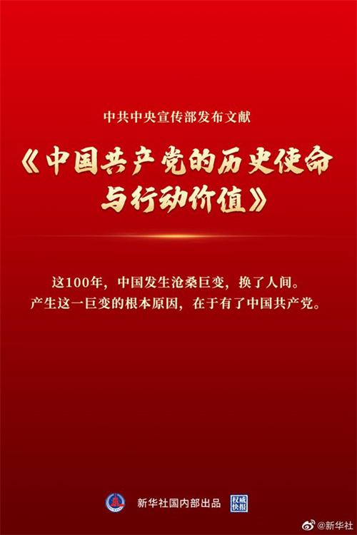 新华社北京8月26日电 中宣部26日发布文献《中国共产党的历史使命与行动价值》。