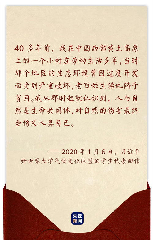 2020年1月6日,习近平在给世界大学气候变化联盟的学生代表回信时,这样回忆道——