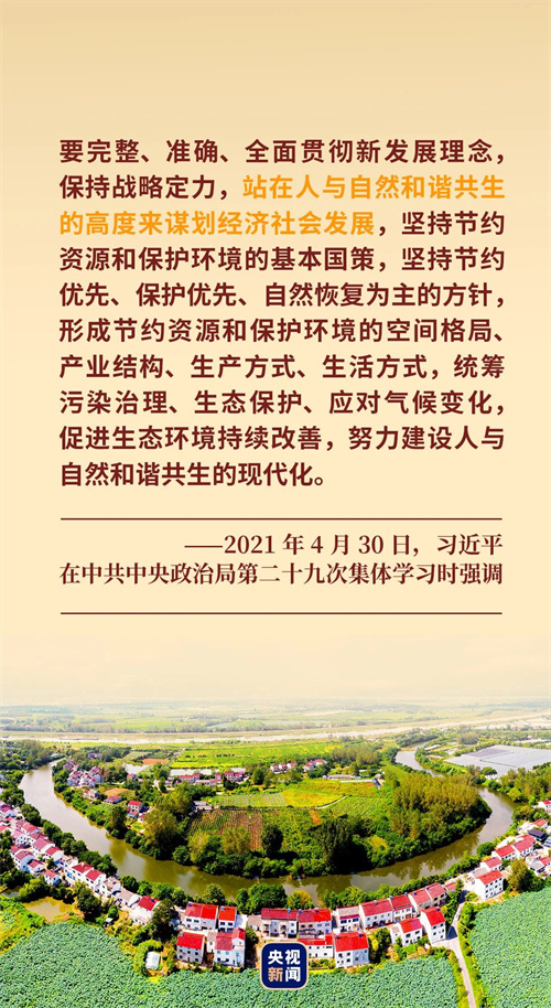 2021年4月30日,中共中央政治局就新形势下加强我国生态文明建设进行第二十九次集体学习。习近平总书记在主持学习时强调,要站在人与自然和谐共生的高度来谋划经济社会发展。