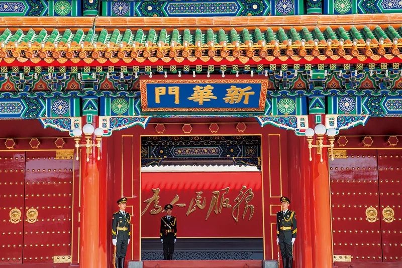 人民是党执政的根基,民心是最大的政治。从1944年毛泽东提出“为人民服务”,到党的十八大后习近平总书记提出以人民为中心的发展思想,中国共产党人始终把人民放在心中最高的位置,始终全心全意为人民服务,始终为人民利益和幸福而奋斗。图为中南海新华门影壁上的“为人民服务”金色大字。刘新武/摄