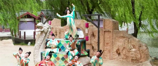 于历史深处探寻,中华文明绵延传承,始终在兼收并蓄中焕发蓬勃生机与活力。2023年,大唐芙蓉园推出一组“壁画再现”演艺,盛唐舞乐,回响穿越千年。