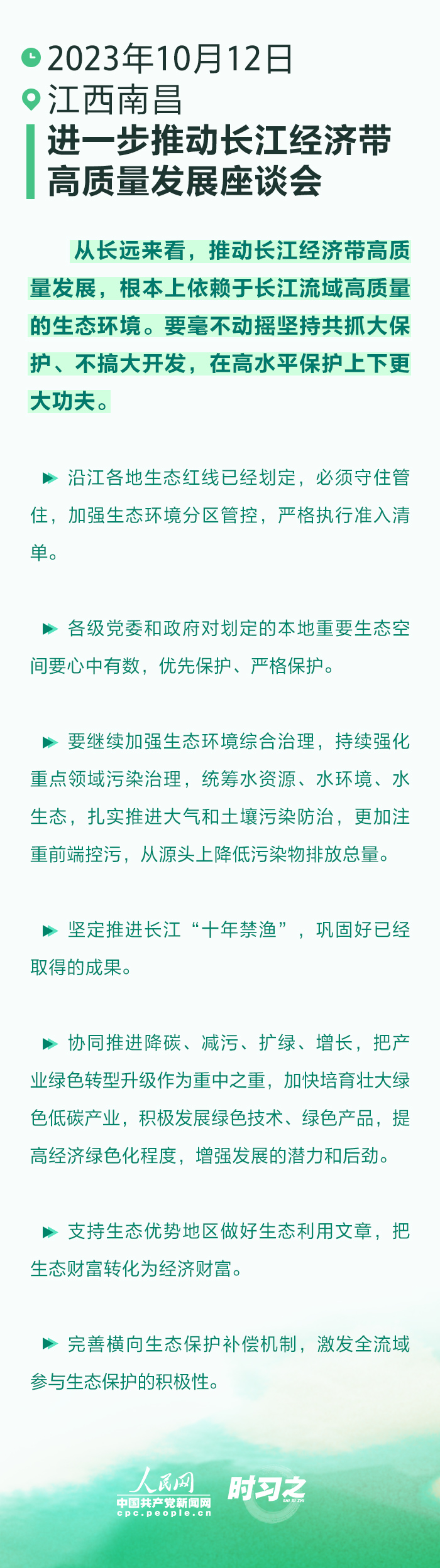 10月12日下午,习近平总书记在江西省南昌市主持召开进一步推动长江经济带高质量发展座谈会并发表重要讲话。座谈会上,总书记指出,从长远来看,推动长江经济带高质量发展,根本上依赖于长江流域高质量的生态环境。PXE安康新闻网