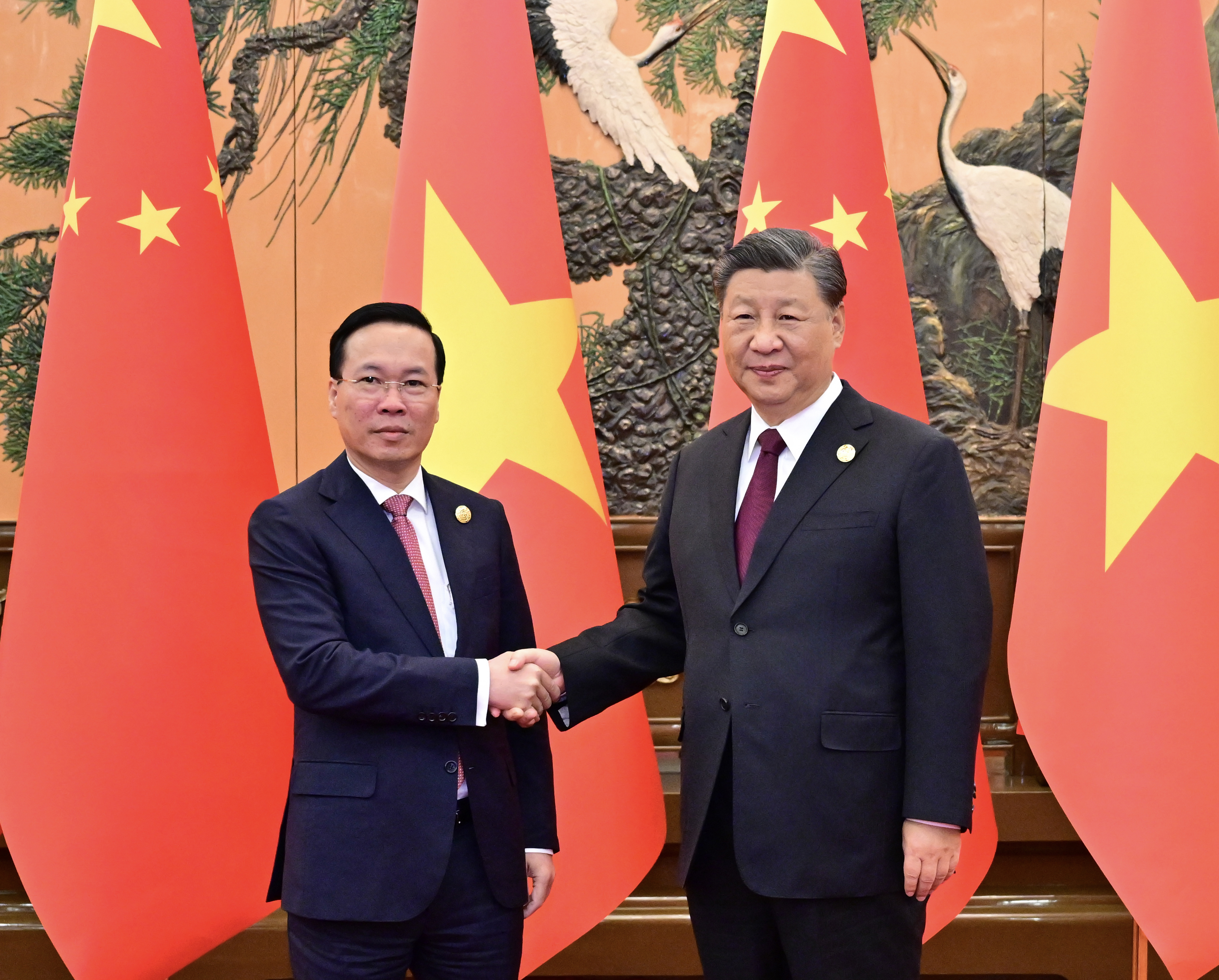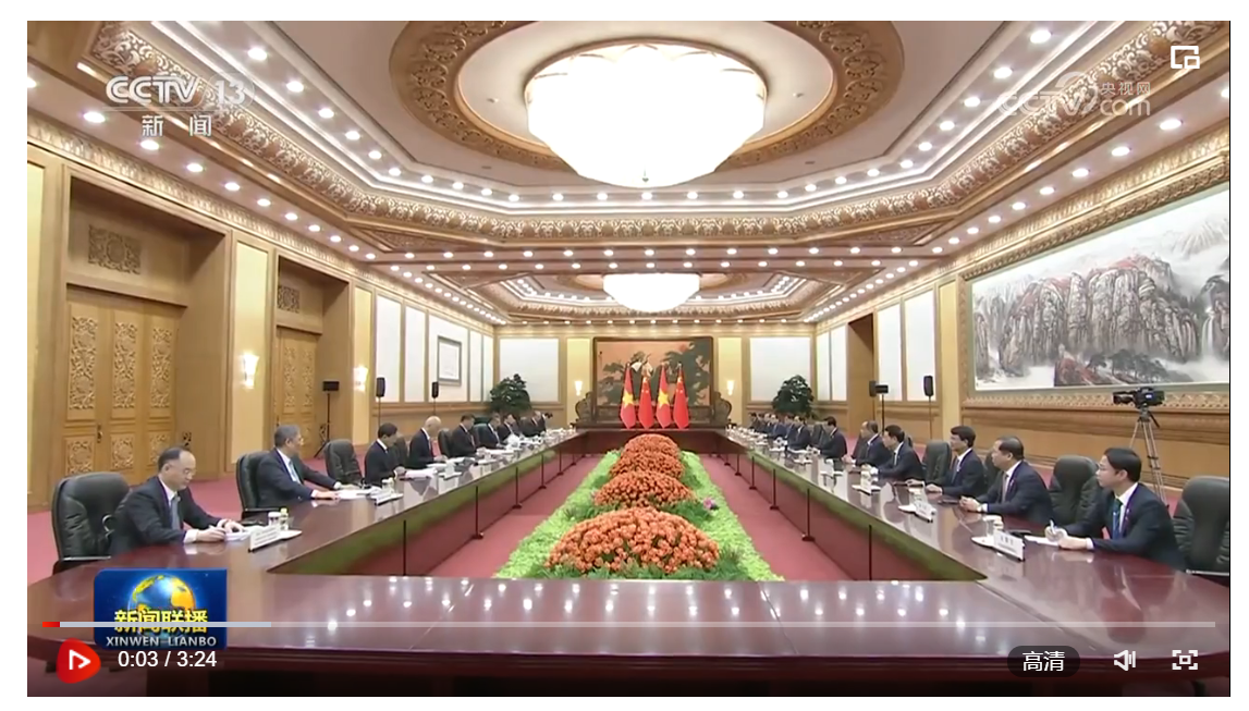 10月20日上午,国家主席习近平在人民大会堂会见来华出席第三届“一带一路”国际合作高峰论坛的越南国家主席武文赏。