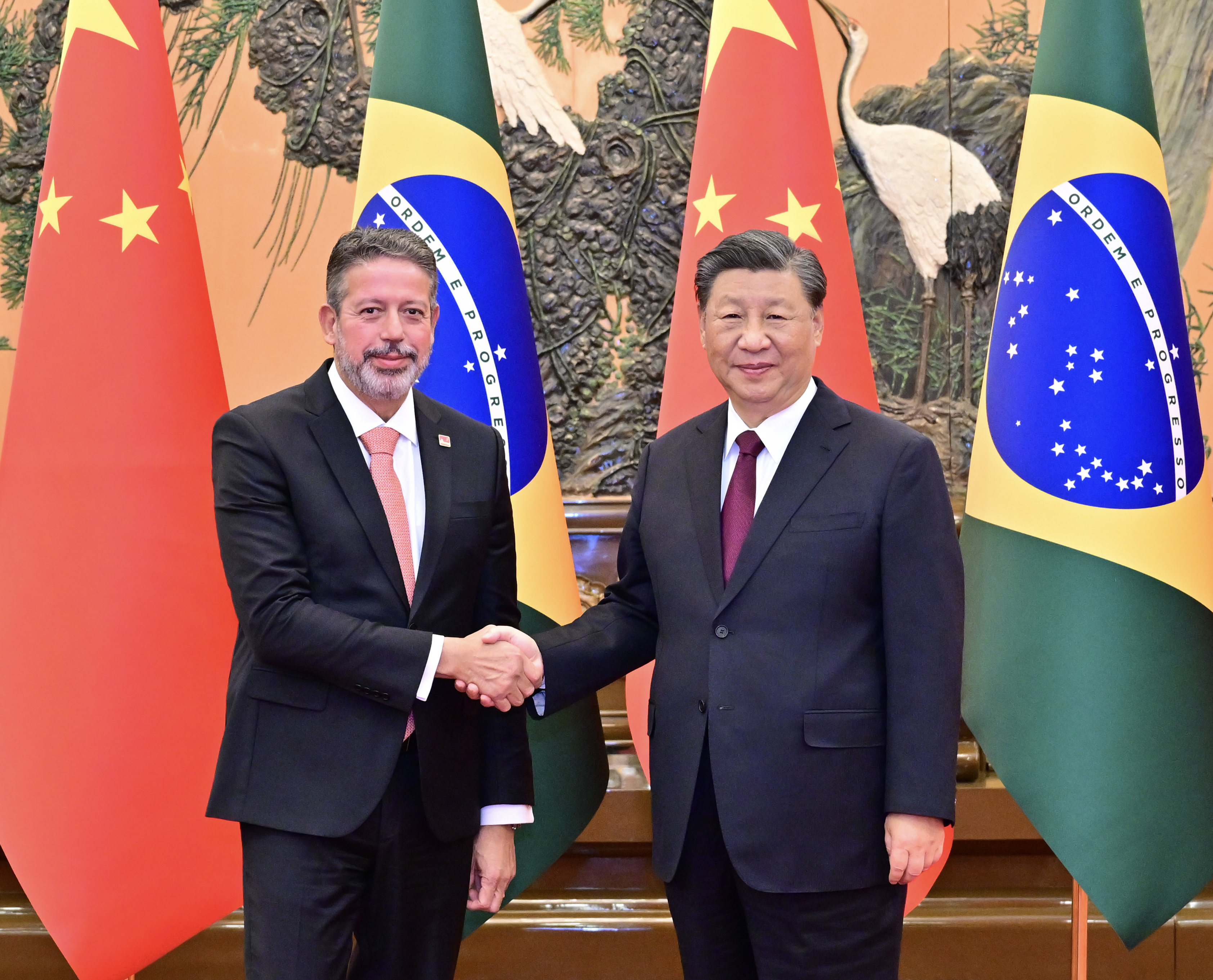 10月20日上午,国家主席习近平在人民大会堂会见巴西众议长里拉。