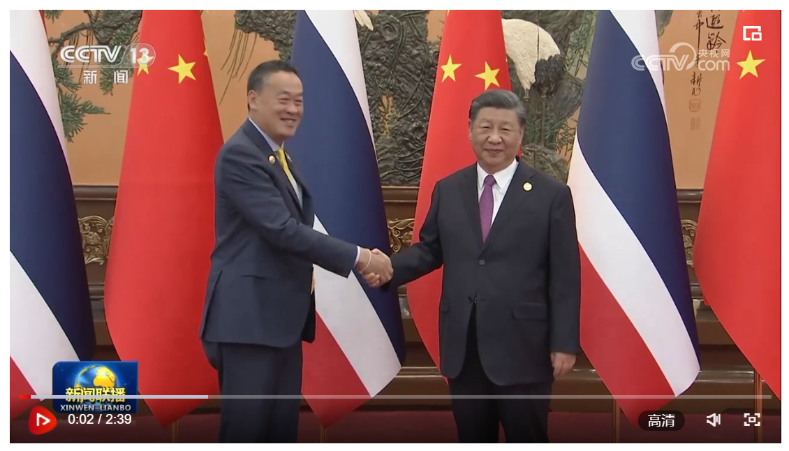 赛塔表示,祝贺“一带一路”倡议提出10周年以及第三届“一带一路”国际合作高峰论坛成功举办。我由衷钦佩习近平主席的远见卓识和中国减贫成就,愿意借鉴中国治国理政经验。泰方将认真落实去年11月习近平主席访泰重要成果,同中方一道构建更加稳定、更加繁荣、更可持续的泰中命运共同体。台湾是中国领土不可分割的一部分。泰方尊重中方核心利益,坚定恪守一个中国原则。希望双方深化各领域务实合作,共建泰中铁路,推进中老泰联通发展构想。泰方将全力保障中国公民在泰安全,欢迎更多中国企业赴泰投资、更多中国公民赴泰旅游。