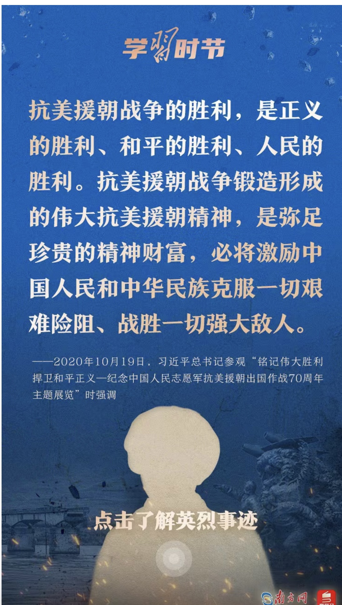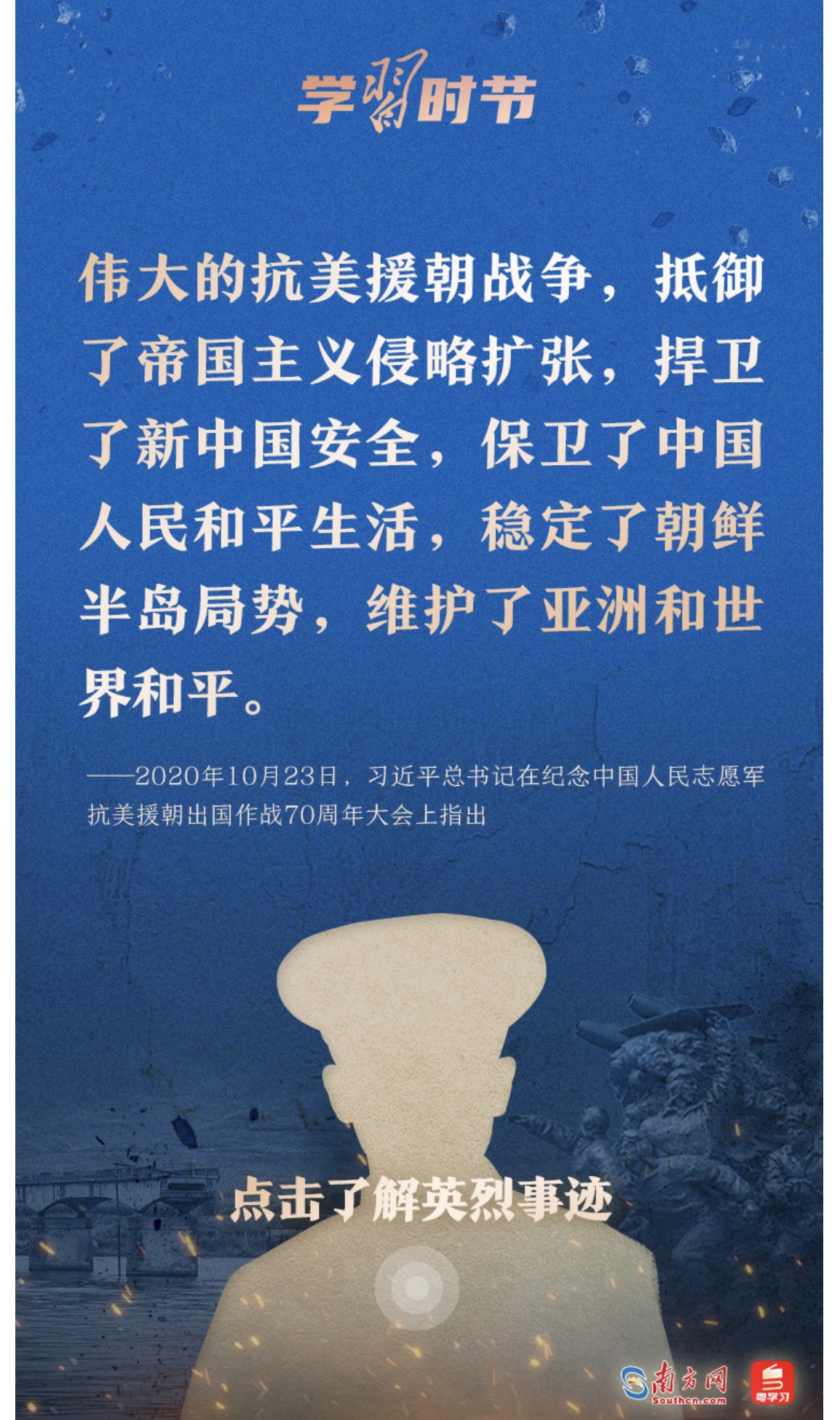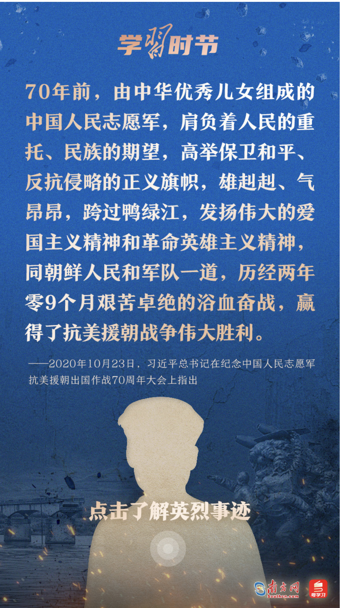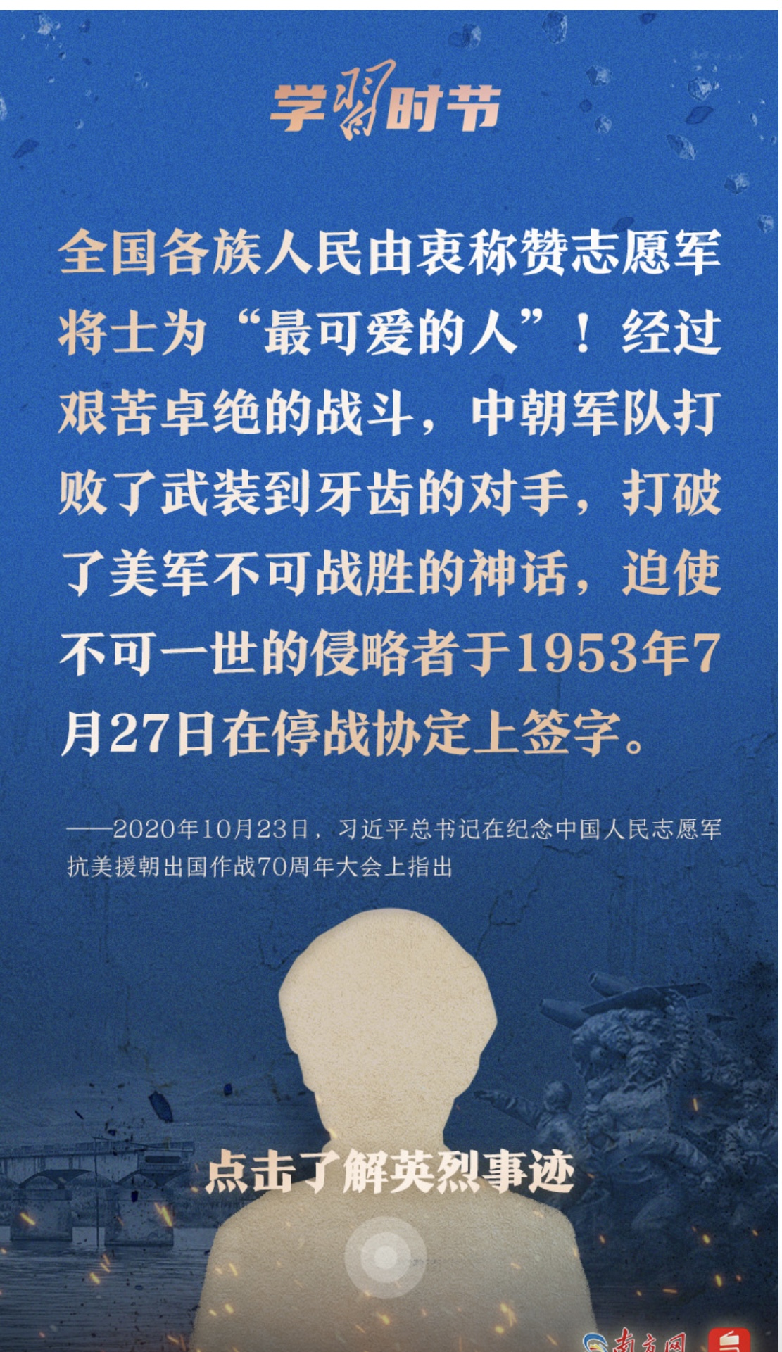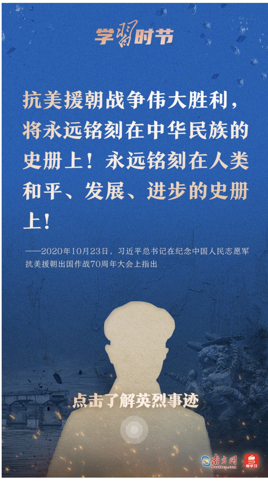 今天,让我们一起学习习近平总书记的重要论述,永续传承伟大抗美援朝精神。勿忘历史,不负英魂!铭记过往,继续前行!