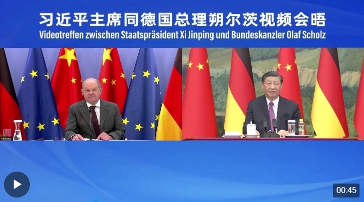 11月3日下午,国家主席习近平同德国总理朔尔茨举行视频会晤。QGu安康新闻网