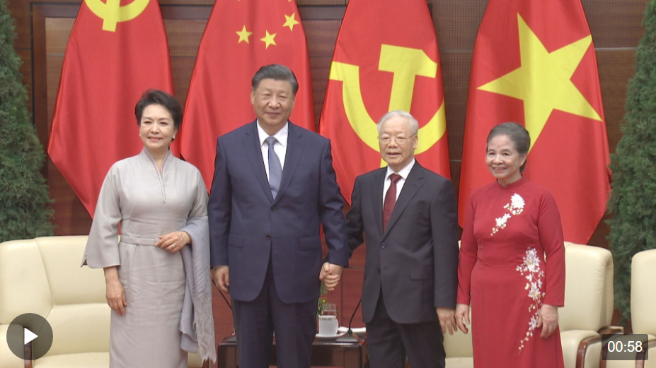 △独家视频丨即将启程回国之际 习近平和夫人彭丽媛同阮富仲和夫人吴氏敏话别