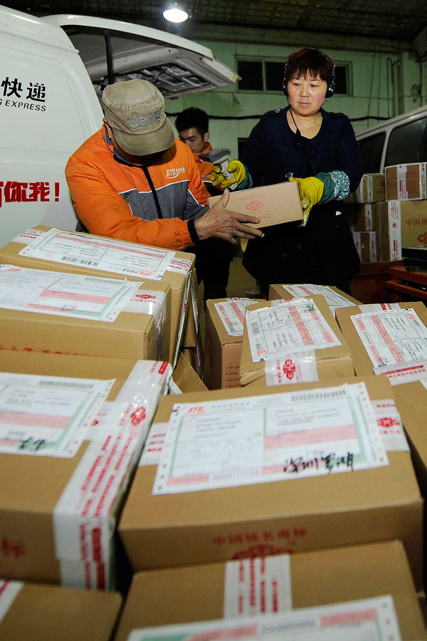 当日,国内多家电子商务网站集中开展“双十一”网购促销活动,记者在申通快递宁夏分公司银川分拣中心了解到,当天进出分拣中心的快递已达近4万件,比平时多出近1倍,预计在11月15日至19日银川分拣中心将达到快递数量的高峰期,日均要处理快递近8万件,是平时的4倍。新华社记者 李然 摄hEX安康新闻网 hEX安康新闻网