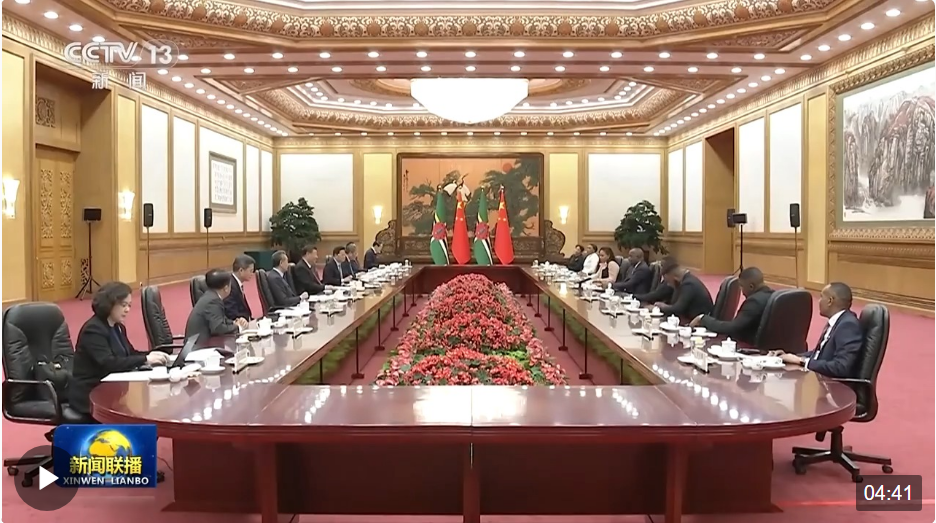 3月25日下午,国家主席习近平在人民大会堂会见来华进行正式访问的多米尼克总理斯凯里特。