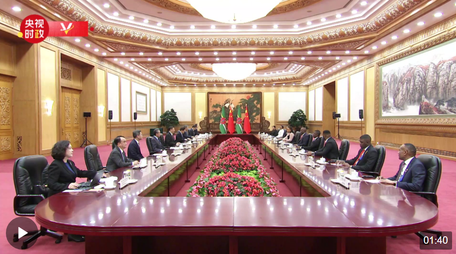 3月25日下午,国家主席习近平在人民大会堂会见来华进行正式访问的多米尼克总理斯凯里特。