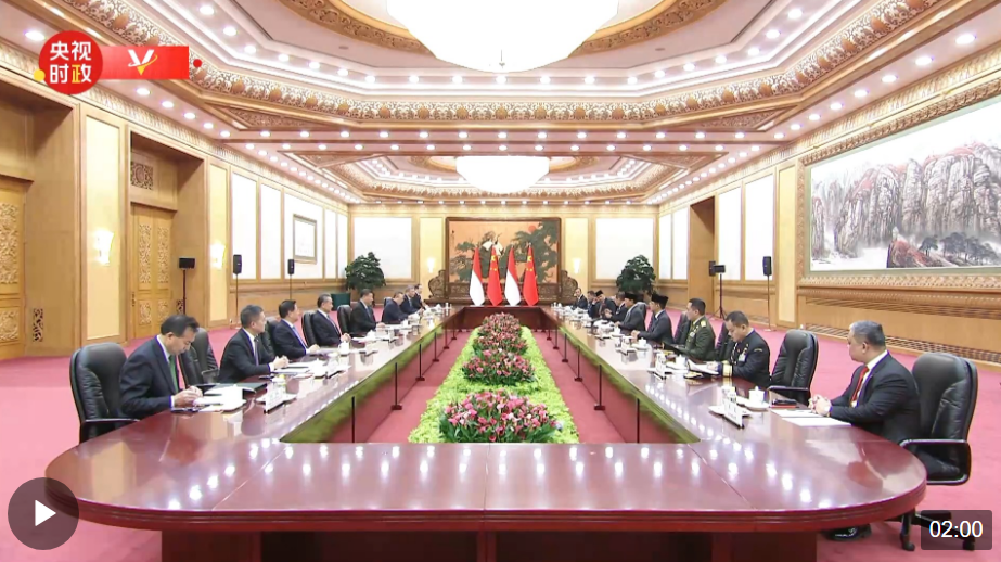 4月1日下午,国家主席习近平在北京人民大会堂同印尼当选总统普拉博沃举行会谈。