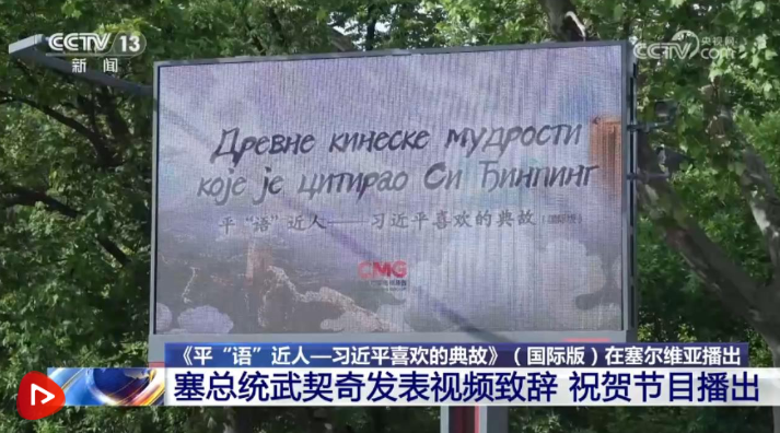《平“语”近人——习近平喜欢的典故》(国际版)当地时间5月8日在塞尔维亚国家广播电视台第一频道独家播出,相关内容及其宣传片等还会在欧洲和全球近百家主流媒体陆续播发。