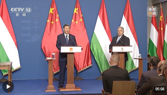当地时间5月9日下午,国家主席习近平在布达佩斯总理府同匈牙利总理欧尔班会谈后共同会见记者。