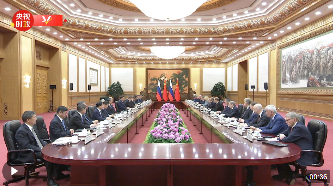 5月16日上午,国家主席习近平在北京人民大会堂同来华进行国事访问的俄罗斯总统普京举行大范围会谈。RT8安康新闻网