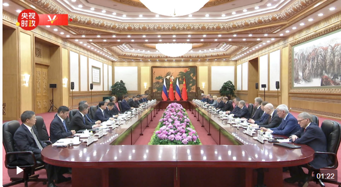 5月16日上午,国家主席习近平在北京人民大会堂同来华进行国事访问的俄罗斯总统普京举行会谈。