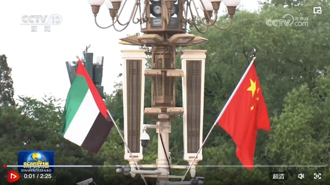 习近平指出,阿联酋是中国重要的全面战略伙伴。近年来,在我们共同引领下,中阿关系保持良好发展势头,树立了新时期中国和阿拉伯国家关系的典范。今年是中阿两国建交40周年,是中阿关系承上启下、继往开来的重要节点。中方愿同阿方一道,继续从战略高度和长远角度牢牢把握两国关系大方向,确保中阿全面战略伙伴关系始终蓬勃发展。