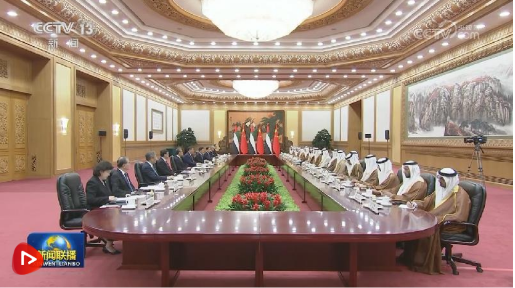 5月30日下午,国家主席习近平在北京人民大会堂同来华国事访问并出席中国-阿拉伯国家合作论坛第十届部长级会议开幕式的阿联酋总统穆罕默德举行会谈。
