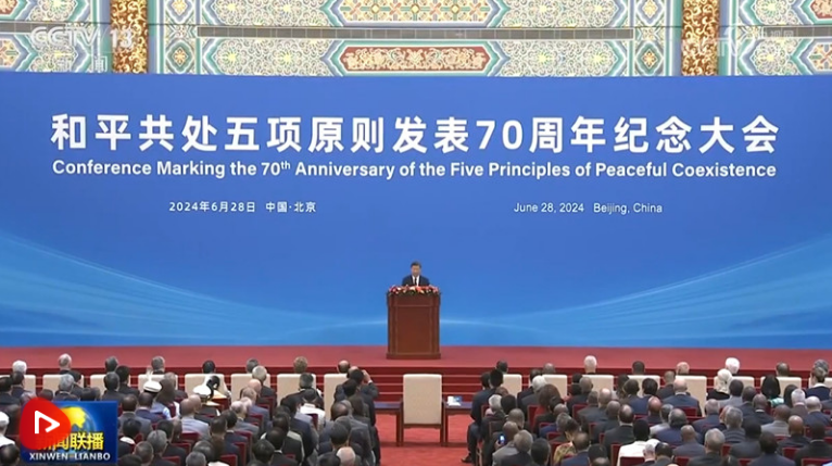 6月28日上午,和平共处五项原则发表70周年纪念大会在北京人民大会堂隆重举行。国家主席习近平出席纪念大会并发表题为《弘扬和平共处五项原则,携手构建人类命运共同体》的重要讲话。esN安康新闻网