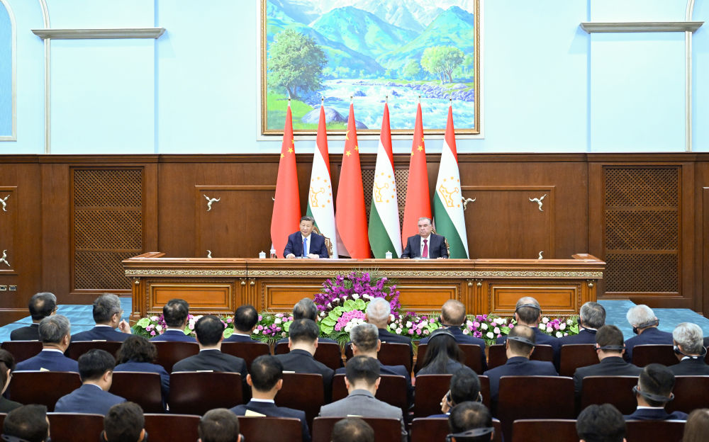刚才,我同拉赫蒙总统举行了内容丰富、成果丰硕的会谈。我们共同签署了联合声明,宣布建立新时代中塔全面战略合作伙伴关系,一致决定在更高起点携手构建世代友好、休戚与共、互利共赢的中塔命运共同体。我们见证交换了20余份政府间、部门间文件,涉及经贸、互联互通、矿产、安全、人文等领域合作。中塔关系拥有了新定位,开辟了两国合作新前景。