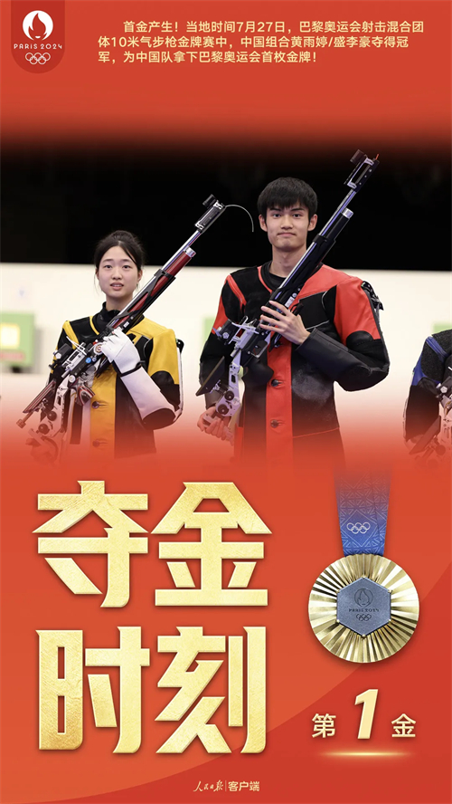 当地时间7月27日,巴黎奥运会首枚金牌在沙托鲁射击中心产生。中国组合黄雨婷/盛李豪不负众望,凭借出色发挥,摘得十米气步枪混合团体金牌,为中国体育代表团取得了本届奥运会的“开门红”。 d3p安康新闻网