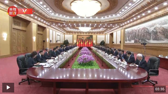 习近平指出,欢迎苏林总书记、国家主席同志对中国进行国事访问,再次祝贺你当选越共中央总书记。你就任总书记后首访就来到中国,充分体现了你对两党两国关系的高度重视,也体现了中越关系的高水平和战略性。我愿同你建立良好工作关系和个人友谊,共同引领中越命运共同体建设走深走实。