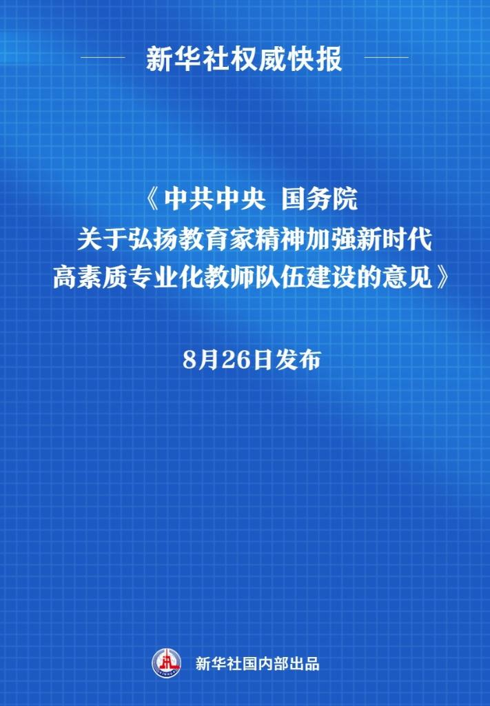 《中共中央 国务院关于弘扬教育家精神加强新时代高素质专业化教师队伍建设的意见》8月26日发布。