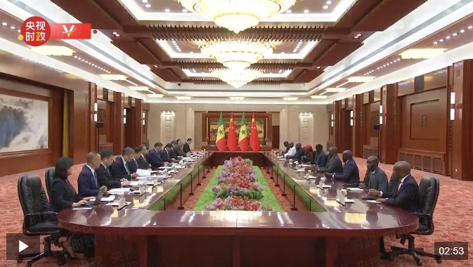 9月4日上午,国家主席习近平在北京人民大会堂同来华出席中非合作论坛北京峰会并进行国事访问的塞内加尔总统法耶举行会谈。