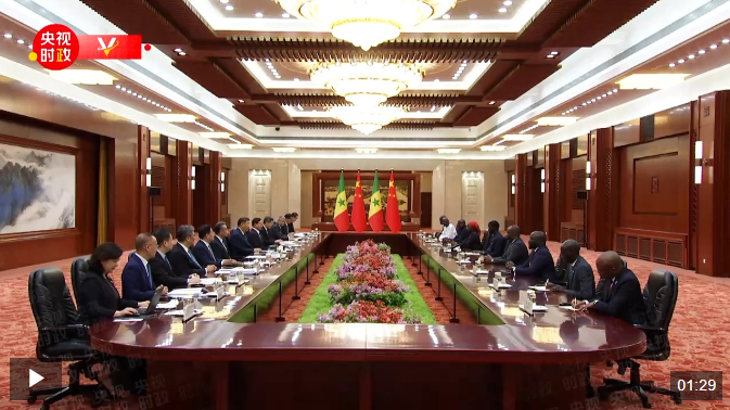 习近平指出,总统先生首次访问域外国家即到访中国,中方表示热烈欢迎。中国和塞内加尔是国家发展振兴道路上的朋友和伙伴。中方愿同塞方在实现各自现代化道路上携手前行,推动两国全面战略合作伙伴关系不断迈上新台阶。这次峰会致力于擘画新时代中非合作新蓝图,携手推进中非现代化,共筑高水平中非命运共同体。我愿同总统先生密切协作,一道引领峰会取得圆满成功。