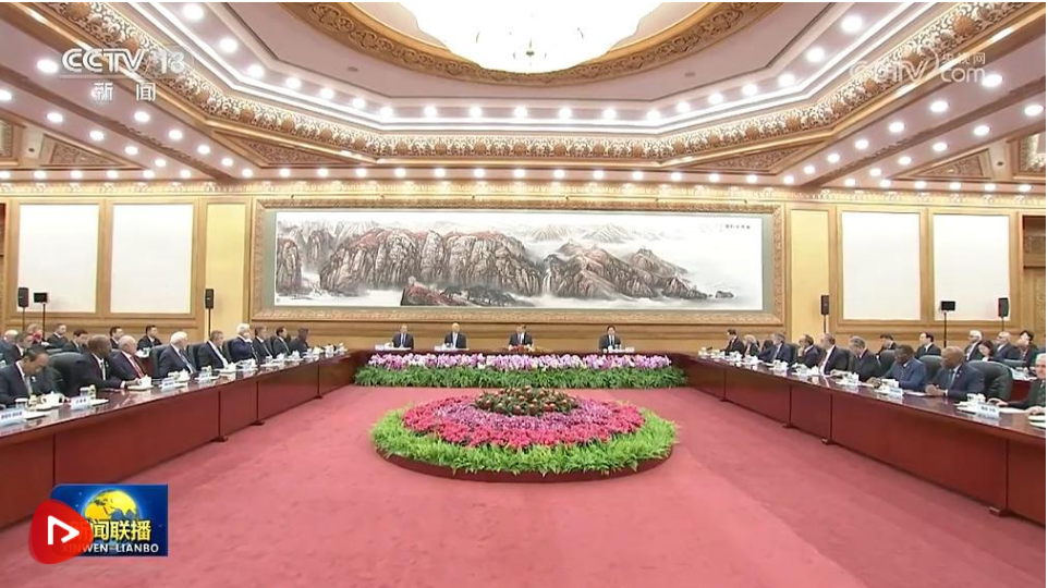 10月11日上午,国家主席习近平在北京人民大会堂集体会见出席中国国际友好大会暨中国人民对外友好协会成立70周年纪念活动的外方嘉宾。