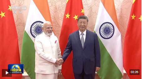 习近平指出,去年我们在喀山成功会晤,中印关系重启再出发,两国交往合作不断取得新进展。中国和印度是两大东方文明古国,是世界上人口最多的两个国家,也是全球南方重要成员,肩负着造福两国人民、促进发展中国家团结振兴、推动人类社会进步的重要责任。做睦邻友好的朋友、相互成就的伙伴,实现“龙象共舞”,应当是中印双方的正确选择。