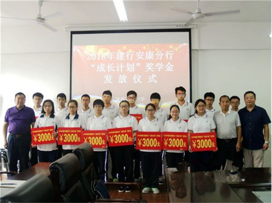 6月25日上午,中国建设银行在汉滨高中举行2018年“成长计划”奖学金发放仪式,向该校今年受助的16名品学兼优的贫困生每人发放了3000元奖学金,帮助他们不断成长,实现自己的梦想。Qh8安康新闻网