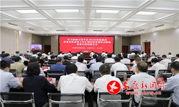 武文罡要求,全市各级各部门要把学习宣传贯彻习近平总书记重要讲话精神作为当前和今后一个时期的首要政治任务,在悉心学习领会、深入宣传宣讲、推动落地见效上再下功夫,持续掀起学习热潮、宣传热潮、实干热潮。要切实用习近平总书记重要讲话精神提振干事创业精气神,抓紧盘点上半年各项目标任务完成情况,对标补短、查漏补缺,统筹抓好稳定经济增长、“三个年”活动、生态环保、乡村振兴、防汛救灾、安全稳定、党的建设等工作,在中国式现代化道路上聚力建设幸福安康,为谱写中国式现代化建设的陕西新篇章贡献力量。