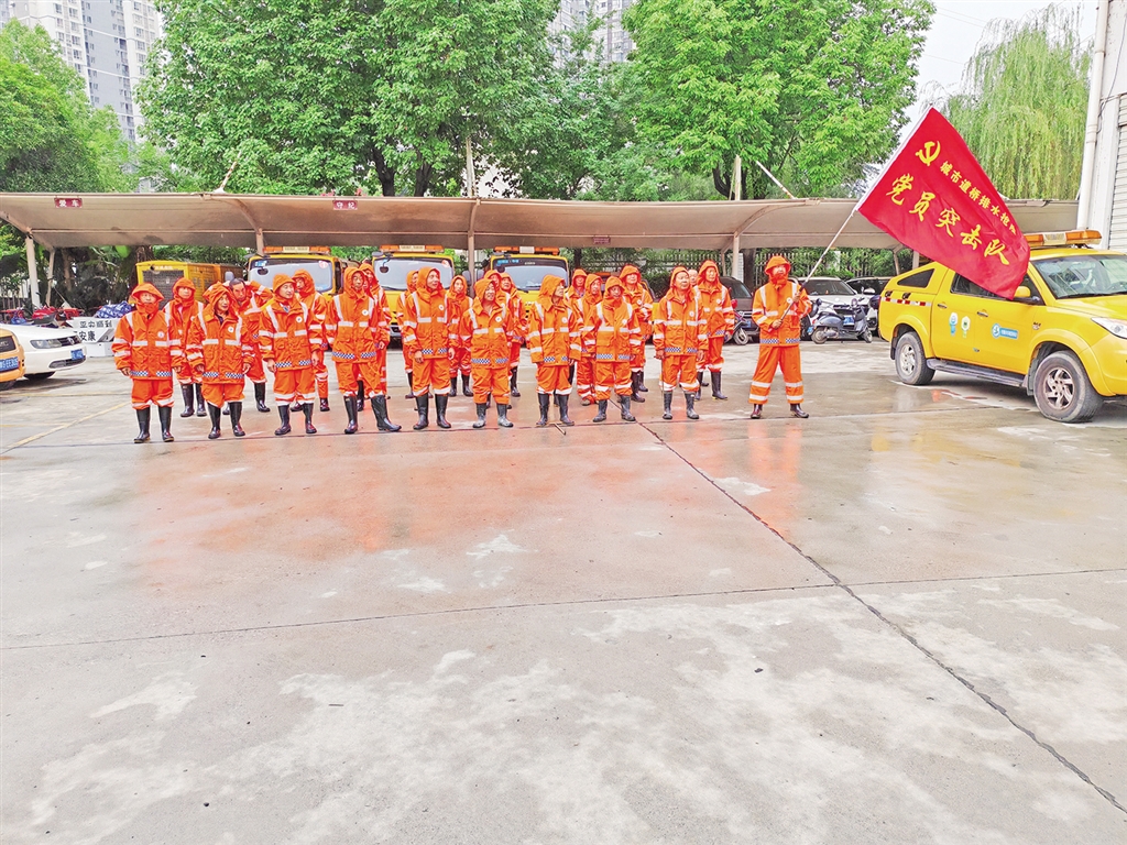 针对持续中到大雨的严峻形势,市市政园林处党委充分发挥政治功能和组织优势,坚持人民至上、生命至上,城市道桥排水抢险党员突击队得令后,迅速进入“战时”状态,车辆、人员、装备分组向着排涝最前沿火速集结。为在水中寻找更多井口,抢险队员徒手在脏水中摸寻并清除井盖上的阻水杂物、撬开井盖,加快积水排放,以最快的速度排除隐患,全力恢复城市正常道路交通秩序。一时间,队员们衣服湿透,雨靴浸水,雨水和汗水交融,挥洒在茫茫雨海。