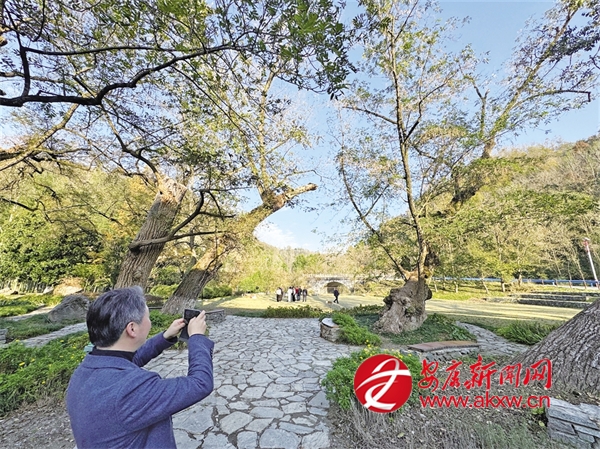 随后采访团驱车驶入双嶂村,一眼看见高大的“麻柳”古树。据悉,这些古树一共16棵,树龄约500年。古树的枝干或挺拔如卫士,或斜卧似老者,繁密的枝叶织成巨伞,将整片草坪笼在树荫里。树下游客纷纷举起相机拍照,快门声伴着欢声笑语。