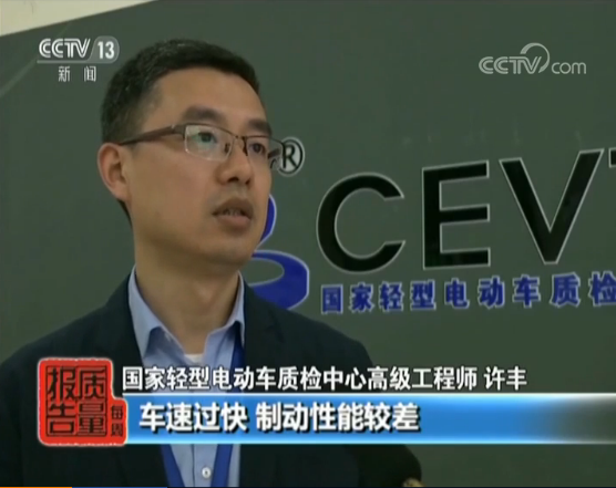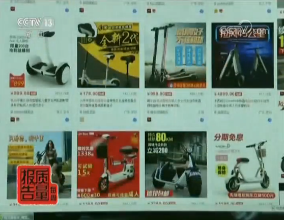 国家市场监督管理总局产品监督司副处长 吴华龙:因为目前没有专门的电动滑板车产品标准,因此,我们主要参照现行国家标准《电动自行车通用技术条件》、《便携式电子产品用锂离子电池和电池组安全要求》等规定,对整车、电池、充电器三大部分进行了监测。