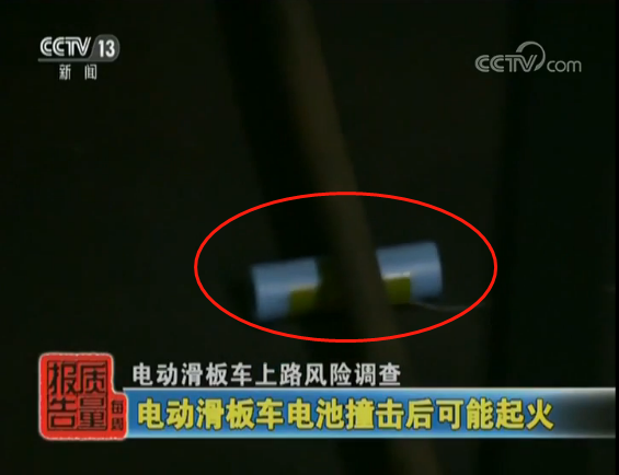 国家轻型电动车及电池质检中心高级工程师 许丰:主要发现的风险呢,最突出的还是表现在骑行安全风险,大部分的电动滑板车的车速过快,制动性能较差,还有个别的车,它的车把、车身、车体的强度不过关。那么在电器安全风险方面呢,主要是发现了有四个批次的锂离子电池这个安全的风险,主要出现的问题是在重物冲击的时候,电池发生了起火爆炸的现象。