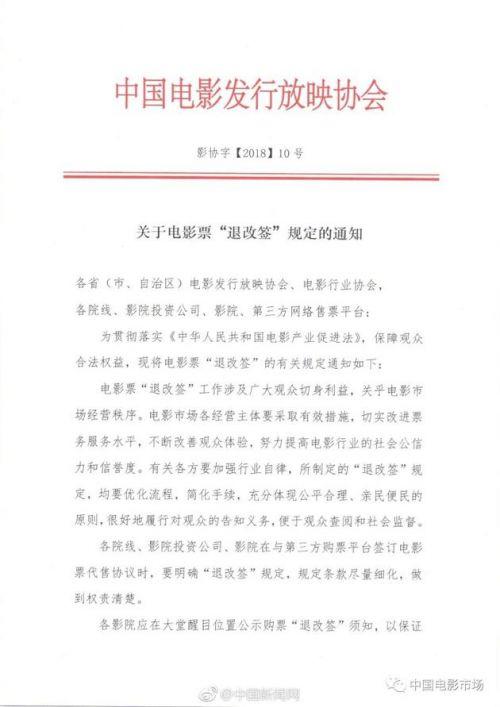 中国电影发行放映协会要求电影市场各有关经营主体,制定改进完善电影票“退改签”工作的实施方案,并尽快付诸实施。中国电影发行放映协会、全国电影市场专项治理办公室将对落实情况进行专项检查。