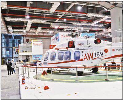 进博会8个展馆搭建工作正在进行,一架直升机在展台上就位。 新华社记者 方 喆摄Azn安康新闻网