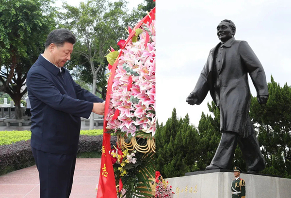 2020年10月14日,深圳经济特区建立40周年庆祝大会在广东省深圳市隆重举行。中共中央总书记、国家主席、中央军委主席习近平在会上发表重要讲话。这是当天下午,习近平来到莲花山公园,向邓小平同志铜像敬献花篮。新华社记者 王晔 摄