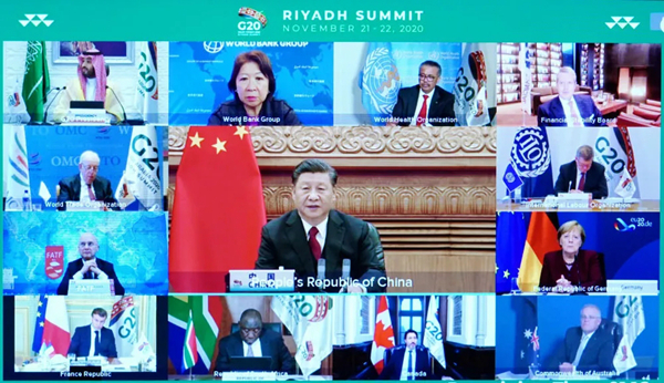 2020年11月22日晚,国家主席习近平在北京以视频方式出席二十国集团领导人第十五次峰会第二阶段会议,重点阐述关于可持续发展问题的看法。新华社记者 饶爱民 摄