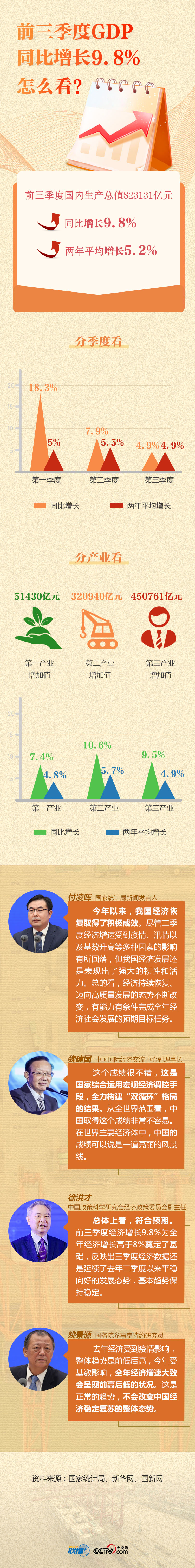国家统计局近日发布2021年前三季度国民经济运行情况。初步核算,今年前三季度国内生产总值823131亿元,同比增长9.8%。分季度看,一季度同比增长18.3%,二季度同比增长7.9%,三季度同比增长4.9%。分产业看,前三季度第一产业增加值同比增长7.4%,第二产业增加值同比增长10.6%,第三产业增加值同比增长9.5%。如何看待这份“成绩单”?CQE安康新闻网