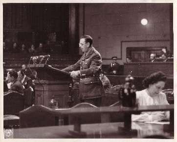 亨利·诺兰在法庭上质证甲级战犯松井石根。受访单位供图