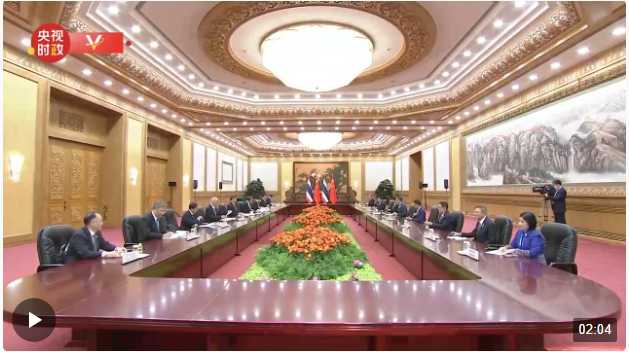 10月19日下午,国家主席习近平在人民大会堂会见来华出席第三届“一带一路”国际合作高峰论坛的泰国总理赛塔。