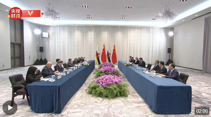 当地时间11月16日下午,国家主席习近平在旧金山会见文莱苏丹哈桑纳尔。