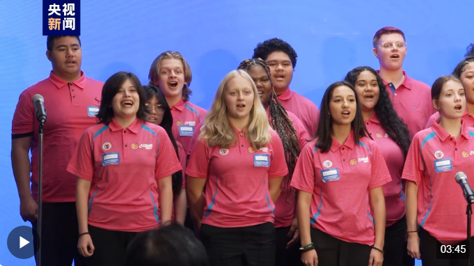 活动现场,来自华盛顿州林肯中学的合唱团演唱了中文歌曲《在希望的田野上》和英文歌曲《伴我同行》,祝愿中美友谊的纽带更加牢固,焕发新的活力。同学们还为习近平主席和夫人彭丽媛精心准备了手绘画作《一起向未来》,并用精美的生日贺卡和《生日快乐》歌亲切地为“彭麻麻”送上了生日祝福。总台台长代为接收。
